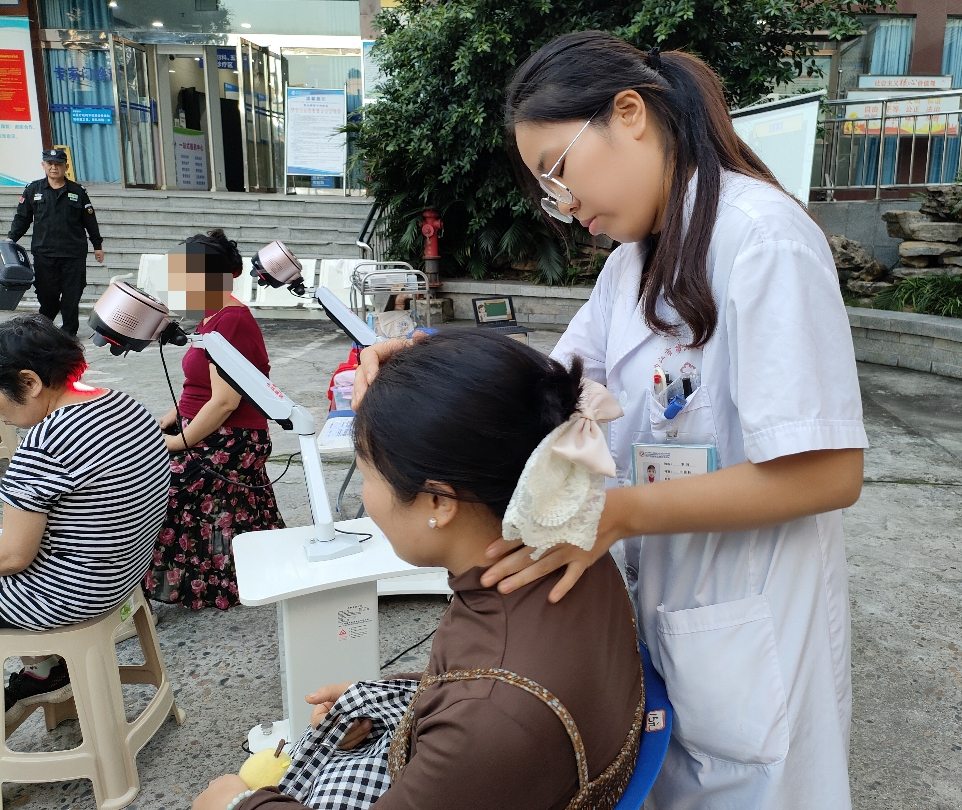 与此同时,院坝里同步开展的“夜间义诊”同样暖意融融,多个科室专家组成志愿服务队,设立健康咨询台,免费为市民进行健康咨询、诊疗建议和基础健康筛查。中医特色体验区更是排起长队,艾灸、推拿、埋针、中药泡脚等项目免费开放,让市民在家门口就能感受传统中医药的独特魅力,享受实实在在的健康福利。
